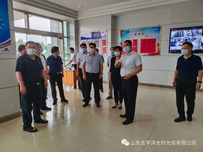 At 11:00 am on August 15th, Zhang Naijun, a second level inspector of the Shandong Provincial Department of Industry and Information Technology, and Jie Zhichao, the director of the Municipal Bureau of Industry and Information Technology, led a team to visit Shandong Pacific Fiber Optic Cable Co., Ltd. to investigate the "specialized, refined, and new" card insertion work. Yang Xubo, the county mayor of Yanggu, Xu Weizhong, the deputy county mayor, and Zhou Wen, the company's general manager, accompanied the investigation.